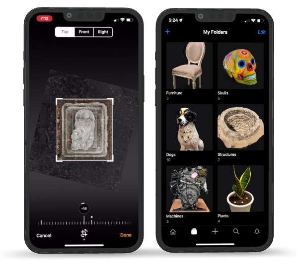 Rotate and crop your 3D scans — as easy as editing a photo. Sort and organize your scans into folders.