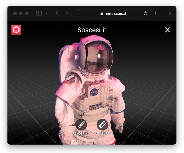 View your scans on the web. Enter VR with the Meta Quest. Send in Messages to inspect in AR.